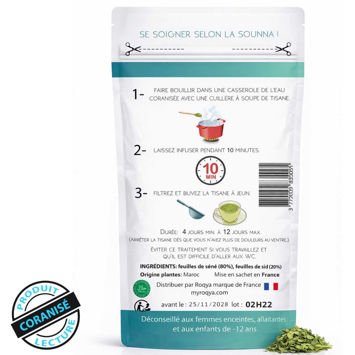 DESCRIPTION : Le sachet de Séné et Sidr de MyRoqya est un moyen puissant pour lutter contre la sorcellerie et les djinns nichés dans la zone du ventre. Cette cure traditionnelle était utilisée par le Prophète (Paix et bénédictions sur lui) comme purge pour le bien-être général.