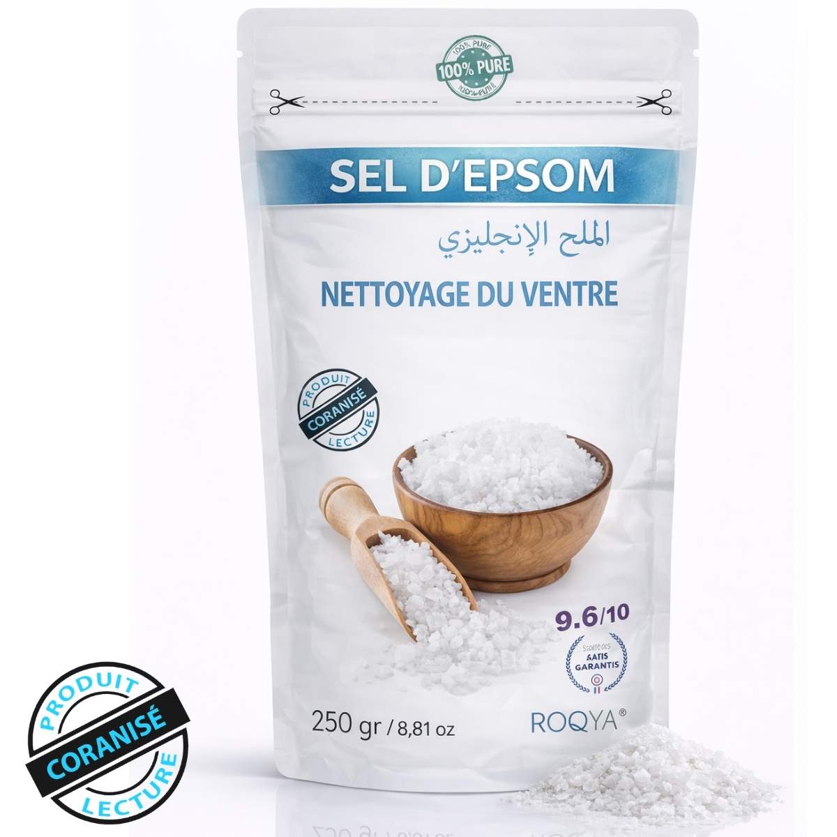 🌿 DESCRIPTION : Le Sel d’Epsom Coranisé de Roqya® combine les bienfaits reconnus du sel d’Epsom avec la puissance sacrée du Coran. Idéalement conçu pour cibler la sorcellerie qui a été consommée, ce produit vous aide à purifier votre système de manière douce et efficace.